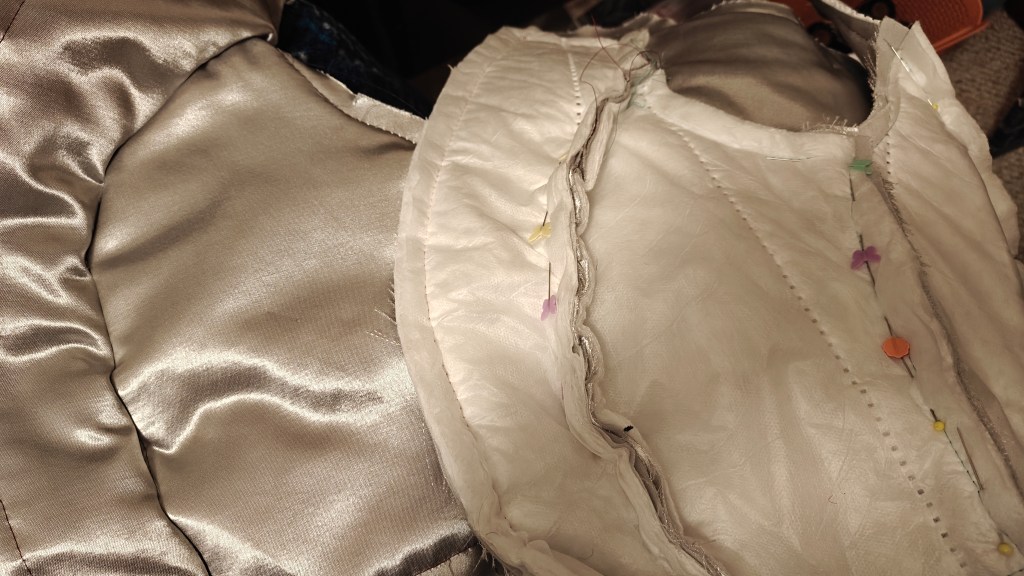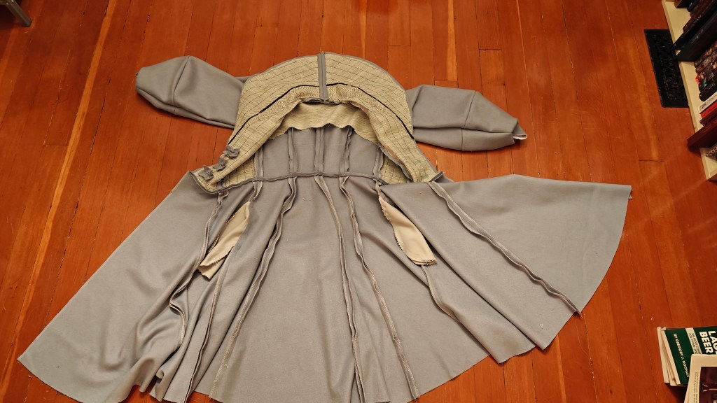 I don’t have many photos of this step, but I basted the kasha lining to the thinsulate, and sewed that as though it was the lining garment. I called it my ‘spacesuit’.