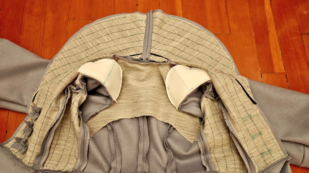 I added shoulder pads because I have pretty sloped shoulders, which otherwise would look funky in on a coat like this. I also added twill tape as a reinforcement for the shoulder seams because of how heavy it is.